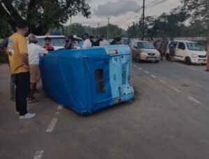 Two people were injured in a road accident at Valliyoor Kav Junction after an electric auto and a bike collided. One passenger sustained serious injuries and was admitted to Mananthavady Medical College Hospital.